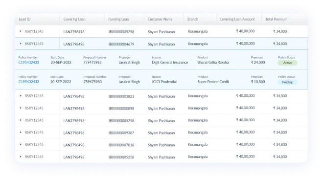 LendPro integrates with your Loan Origination System (LOS) to fully digitize the insurance attachment process. From pricing to policy issuance, and from servicing to claims, it makes the entire workflow paperless. This not only boosts sales productivity and optimizes operations but also increases insurance value penetration.